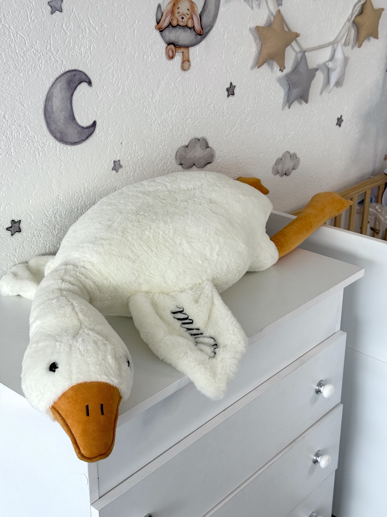 Plišanac je velikih dimenzija, a kako bi ga pretvorili u savršen personalizovani poklon po želji na krilo radimo vez imena. Vez imena je 7KM. U košaricu je potrebno dodati artikal pod nazivom Usluga Mašinskog Veza. Dovoljno je u napomenu, prilikom popunjavanja podataka, upisati ime djeteta.
