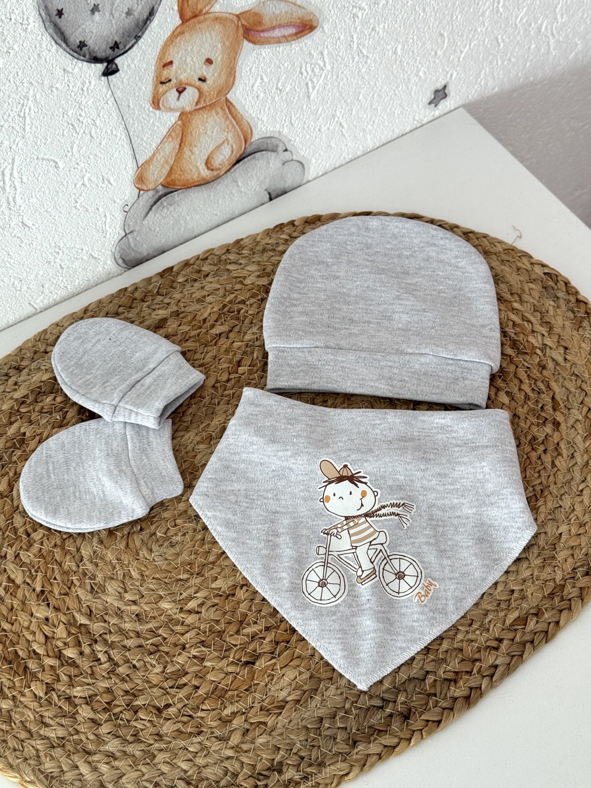 Set za novorođenče – kapica, siperak i rukavice.